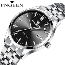 FNGEEN-Reloj de negocios de lujo para hombre y mujer, relojes de pulsera de cuarzo azul de acero inoxidable, manecillas luminosas impermeables, Aad, 4006