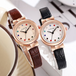 Gogoey nueva correa de cuero reloj de cuarzo para mujer diamante colorido reloj de cuarzo Simple fábrica al por mayor relojes de regalo para mujer