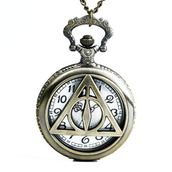 Accesorios de colgante de recuerdo Vintage, collar, abalorio triangular, reloj de bolsillo de cuarzo con cadena para hombres, regalos